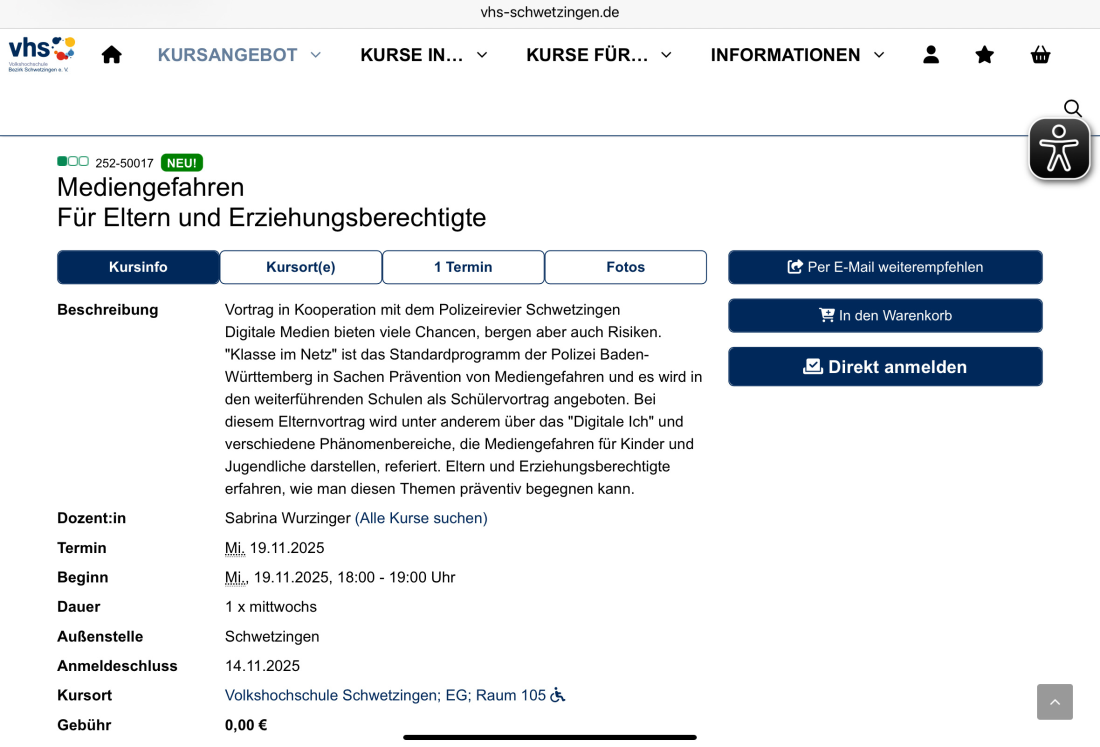 Da das Thema Mediennutzung in unserem Alltag immer wieder eine Rolle spielt, möchten wir den Medien-Elternabend an der vhs empfehlen: