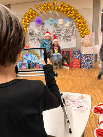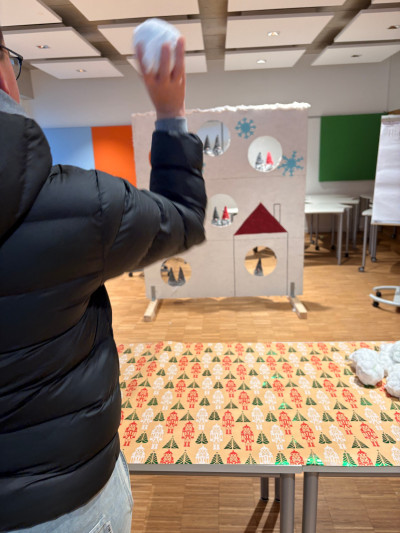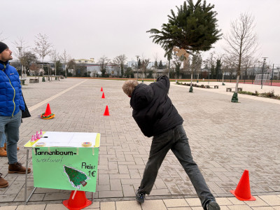 Den ganzen Vormittag wurde gebastelt, dekoriert und vorbereitet, damit am Nachmittag alles startklar ist. Dieses Mal gab es neben den vielen Ständen mit Essen und Getränken sowie Basteleien in der Aula auch ein Winterdorf auf dem Schulhof, wo sich weitere Leckereien und Aktivitäten fanden. Tannenbaum-Weitwurf zum Beispiel!