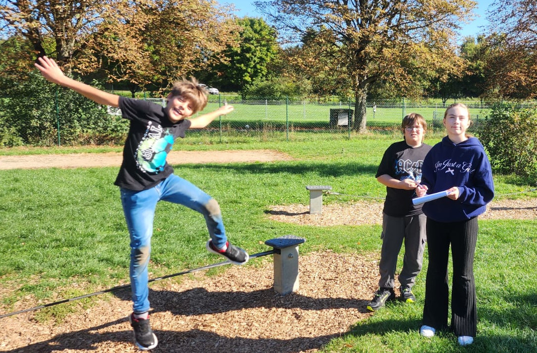 Am Freitag, dem letzten Tag dieser besonderen Woche, stellten die neuen Sechstklässler ihr frisch gewonnenes Miteinander bei einem Ausflug zum Alla-Hopp-Gelände auf die Probe. Schon der Weg dorthin war voller Herausforderungen: Die Teams mussten gemeinsam Aufgaben lösen, ihre Umgebung genau beobachten, knifflige Rechenrätsel knacken und gut zusammenarbeiten.