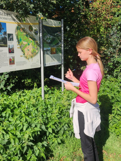 Auf dem Spiel- und Bewegungsareal wartete anschließend ein abwechslungsreiches Programm. Neben dem Ausprobieren der vielen Spielgeräte stand auch die Natur im Fokus. Die Schülerinnen und Schüler lernten, Bäume wie Linde, Ahorn und Eiche an ihren Blättern und Früchten zu erkennen und zu bestimmen. So verband sich Bewegung an der frischen Luft mit spannenden biologischen Entdeckungen.
