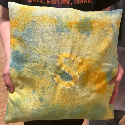 Die AES-Gruppen der 9.1 und 9.4 haben im Rahmen eines Upcycling-Projekts Stoffe gebatikt und aus diesen Kissenhüllen genäht. Der Prozess erstreckte sich über mehrere Wochen.