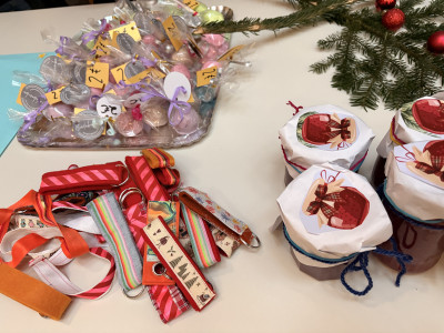 Im Haus hatten sich aber auch jedes Cluster eine Mitmach-Station ausgedacht und so konnten Windlichter, Sterne oder Tangrame gebastelt werden, Glitzertatoos gemalt oder Wichtel abgeworfen werden. An den Verkaufsständen konnten von selbstgenähten Schlüsselanhängern, über Weihnachtsdeko und Plätzchen allerhand erstanden werden.