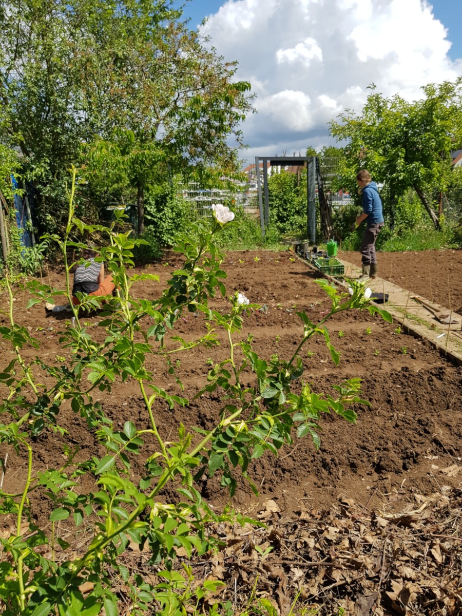 Wo sich sonst Schülerinnen und Schüler geschäftig zwischen den Beeten drängelten, um Pflanzlöcher zu graben, Setzlinge einzupflanzen, Saatfurchen zu ziehen, Zwiebeln zu stecken und Kartoffeln zu legen, da herrschte diesmal relative Leere und Ruhe. Die Gemüseackerdemie (Ackerdemia e.V.), mit der die Schule zusammenarbeitet, kam mit drei Ackercoaches, um trotz coronabedingter Schließung die Schule beim Pflanzen zu unterstützen. Damit die Schülerinnen und Schüler der fünften Klassen, die in diesem Jahr eigentlich mit dem Bepflanzen des Ackers beauftragt gewesen wären, trotzdem sehen und auch lernen können, wie man die verschiedenen Gemüsesorten pflanzt und richtig aussät, wurde von jedem Arbeitsschritt ein Video gedreht. Den fertigen kleinen Film können die Kinder zwar momentan nur zuhause anschauen, aber spätestens, wenn die ersten Gemüse genascht werden, kann dies dann hoffentlich wieder im Schulgarten stattfinden.