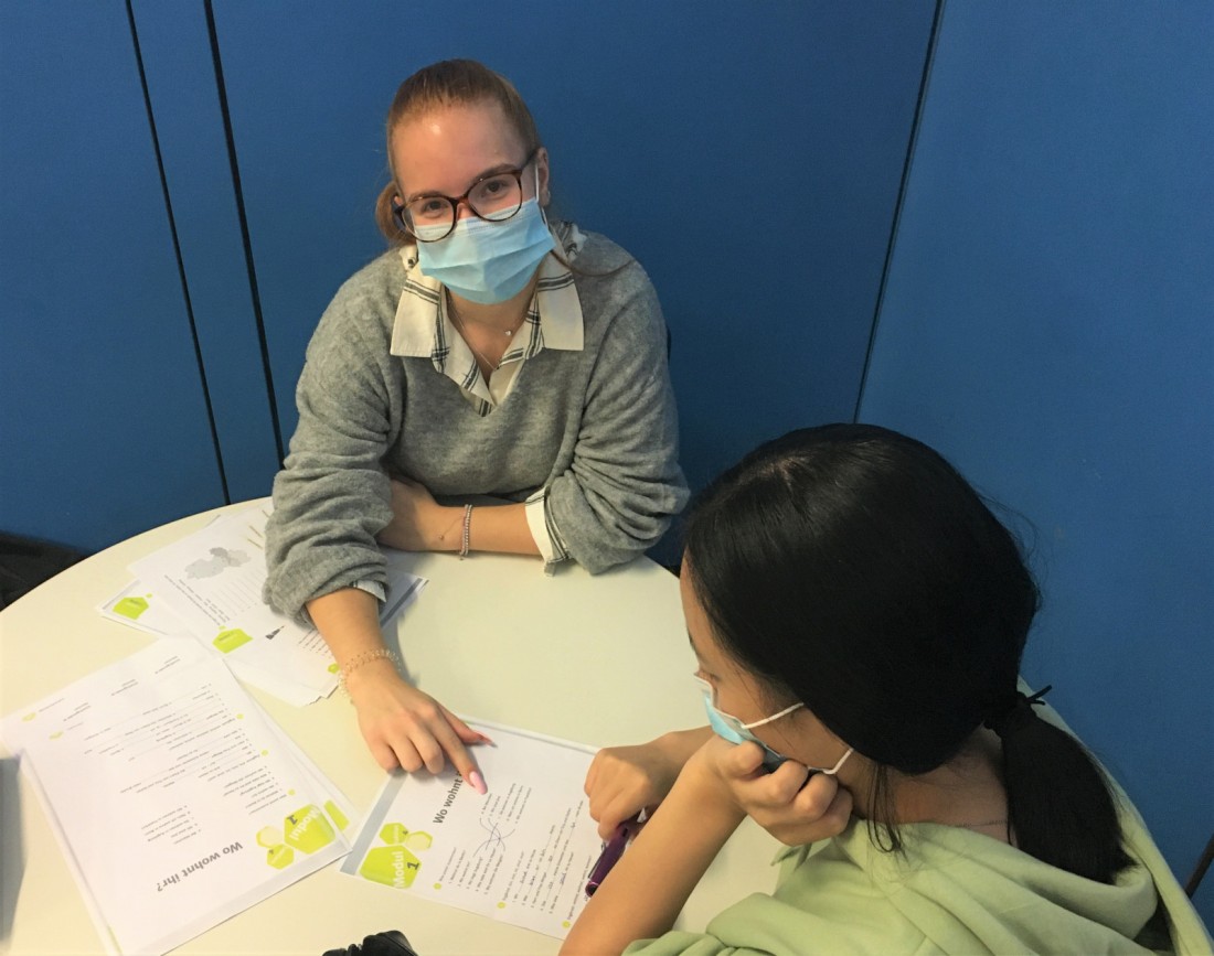Auf die Schimper Schule kam sie, da eine Bekannte bereits ihr FSJ hier absolvierte und nur Gutes berichten konnte. „Zu Schulzeiten hatte ich bereits ein Praktikum an der Grundschule absolviert. Nun wollte ich sehen, wie der Alltag an der Schule über einen längeren Zeitraum aussieht.“ Offen und neugierig stellte sie sich letzten Herbst dem Kollegium vor und war von Beginn an begeistert, wie freundlich sie begrüßt und integriert wurde. Wer konnte zu diesem Zeitpunkt schon erahnen, welche Herausforderungen sie durch den coronabedingten Lockdown meistern würde. „Als die Schule im März geschlossen wurde, war ich vor allem in der Notbetreuung eingesetzt“, erzählt Collien, „aufgrund der strengen Hygienemaßnahmen war es da nicht immer einfach, die Kinder neben ihrem Homeschooling zu beschäftigen.“ Auf die Frage, was sie in ihrem Jahr besonders beeindruckt hat, antwortet sie prompt: die Inklusion. „Ich hatte oft die Möglichkeit, inklusive Settings zu unterstützen und bin begeistert, wie hier Gemeinschaft gelebt wird. Hier wird niemand abgestempelt, sondern alle sind Teil eines Teams.“ Wie es jetzt nach ihrem Jahr Einsatz an der KFS weitergeht? Motiviert und bestärkt durch ihre Erfahrungen hat sich Collien für das Lehramt mit dem Schwerpunkt Sonderpädaogik an der PH Heidelberg eingeschrieben und wartet derzeit noch auf den Bescheid. So lange darf sie weiterhin das Team der Vorbereitungsklasse unterstützen. „Wenn es nach mir ging“, so Collien, „würde ich am liebsten hierbleiben.“