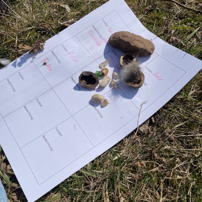 Bei wundervollstem Sonnenschein machten sich Schüler und Schülerinnen mit ihrer Klassenlehrerin Frau König und ihrer Lernbegleiterin Frau Buckesfeld auf den Weg in den Acker, um sich dort als Detektiv-Team auf die Suche zu begeben nach Dingen für ein imaginäres Naturkundemuseum. Es sollten neun Exponate gefunden werden, darunter etwas Weiches, etwas Rundes, etwas Kurioses, etwas, zu dem man eine Geschichte erzählen kann und auch etwas ganz Gerades! Schon erstaunlich, was man so alles in einem gepflügten Acker findet!