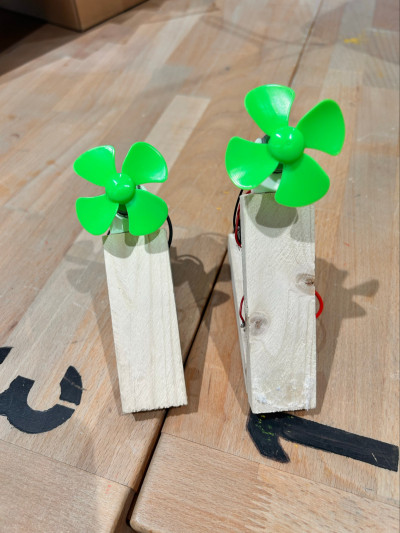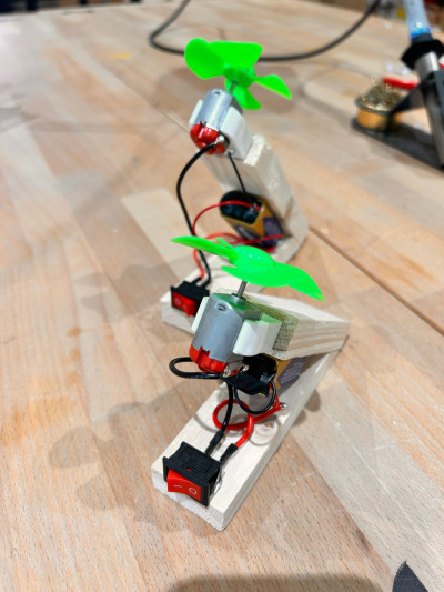 Das Ergebnis: funktionstüchtige Mini-Ventilatoren mit Holzsockel, Elektromotor, Propeller, Schalter und Batteriehalter – alles eigenhändig gefertigt. Die Begeisterung war groß, als sich die grünen Propeller das erste Mal surrend drehten.